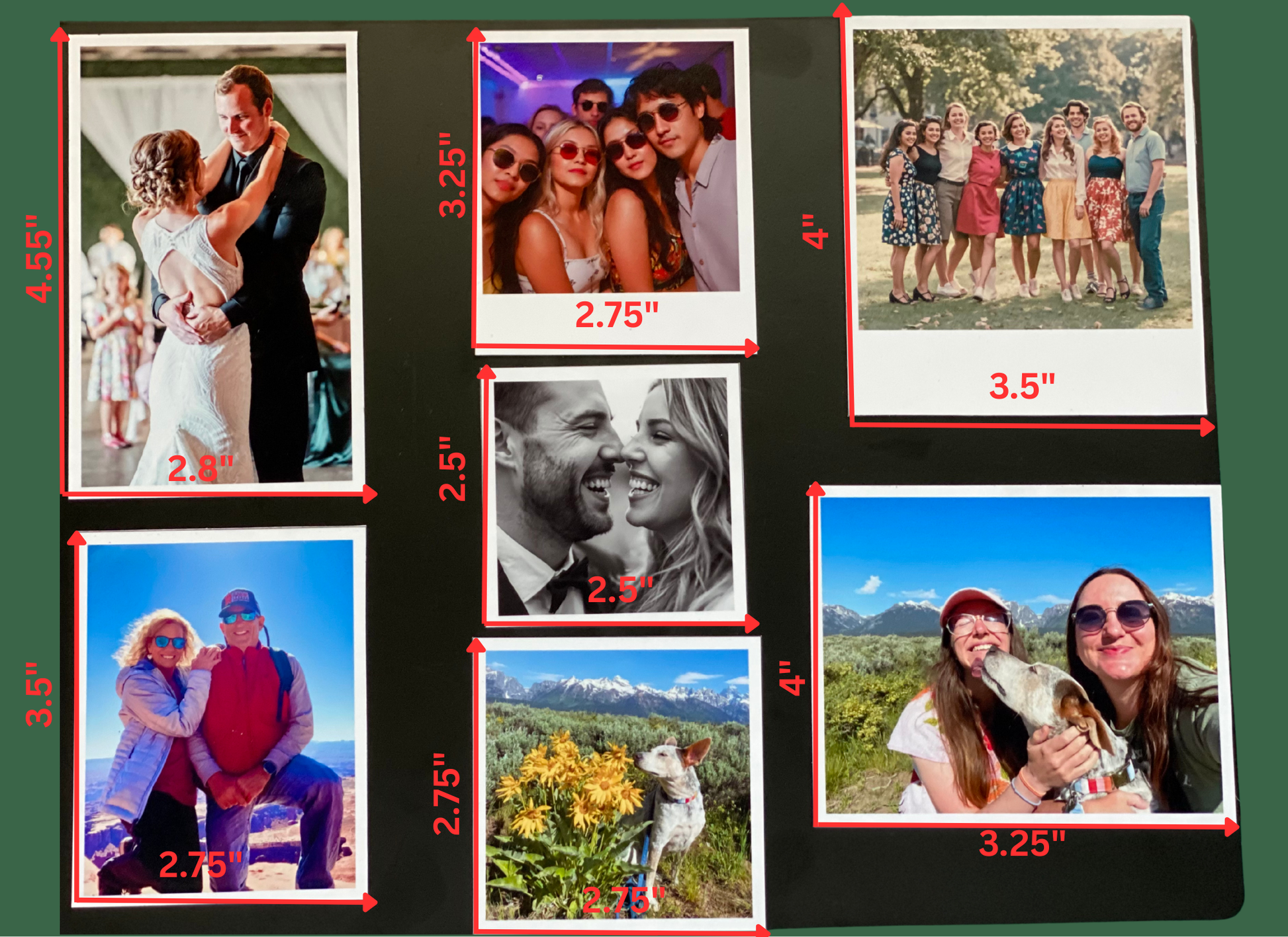 These lay flat, are lightweight, and perfect for fridges, lockers, and memory boards. Lined with a white boarder for a more elegant feel.
